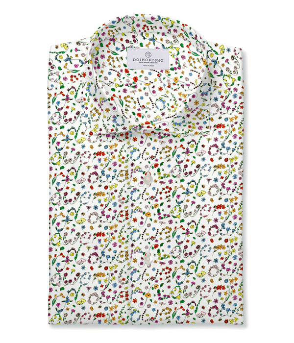 イギリス・ロンドンのリバティ社の生地は華やかな雰囲気を備えシンプルなラインで描かれた「リバティ・プリント」として広く知られています。1920年代に製法が確立されたタナローンは軽やかで柔らかな肌触りでリバティの代表的な生地です。英国のみならず世界中の人々へ感動を与える「リバティ・プリント」を是非、土井縫工所のドレスシャツでお楽しみください。
