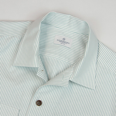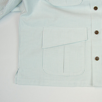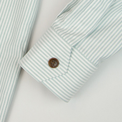 ジャケット風に着ていただけるように襟にはボタンナップカラーを採用しています。