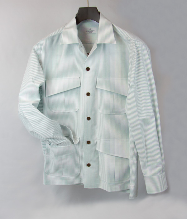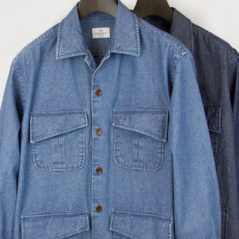 胸と腰に配した4つのポケットは、釦付きのフラップデザインから斜めにカットされた新しいスタイルへ。釦を省くことで軽快な印象とスムーズな出し入れを実現しています。