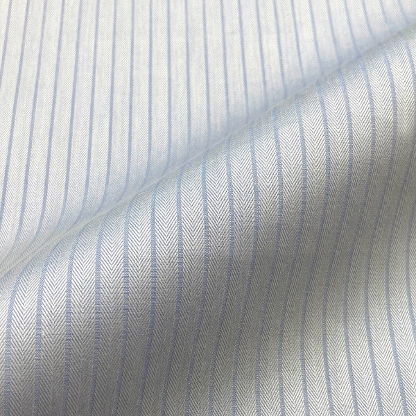 鮮やかなサックスカラーに、細かなドビーミニヘリンボーンを走らせた一枚。