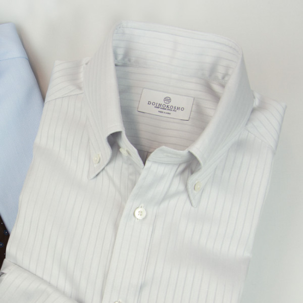 襟型はあえてのボタンダウンで、ビジネスでも程よい軽快さを演出します。