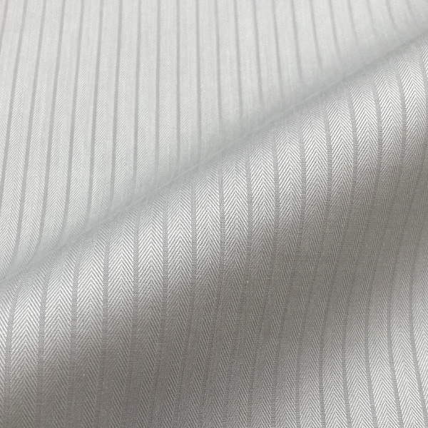 綿100%の柔らかな風合いに、ライトグレーのドビーストライプを乗せた一枚。