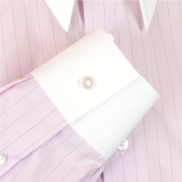 ピンク×ベージュ ストライプ(新襟・新カフス)