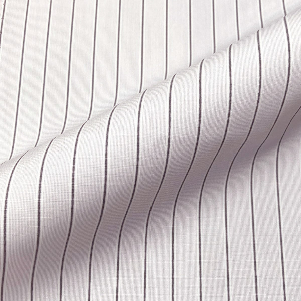 ヘアラインをベースに、チョークストライプがさりげなく交差する個性的な生地。