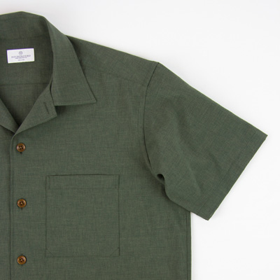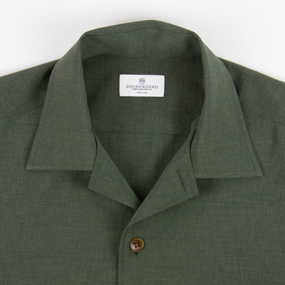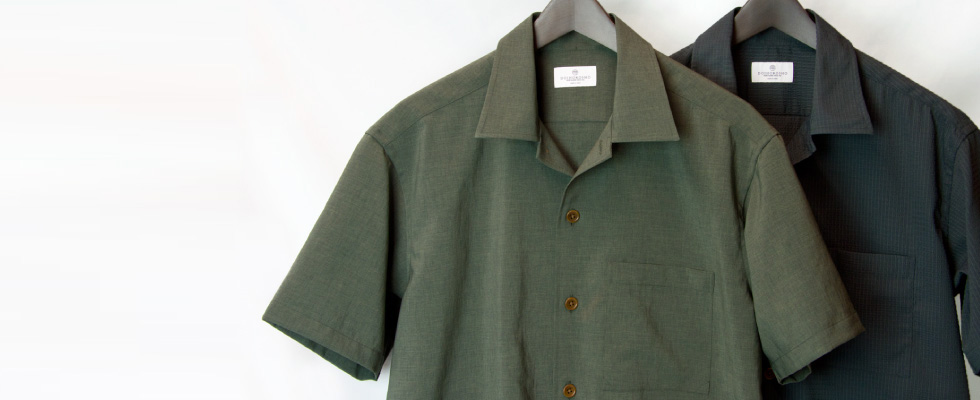 ドライな質感が特徴のハイブリッドファブリックを使用したオープンカラーシャツ。
