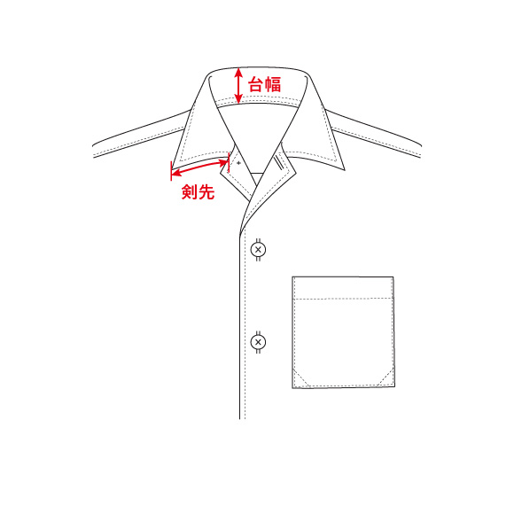 | 着丈 | 69.5 | 71 | 72.5 | 74 | 75.5 | 77 | 78.5 |