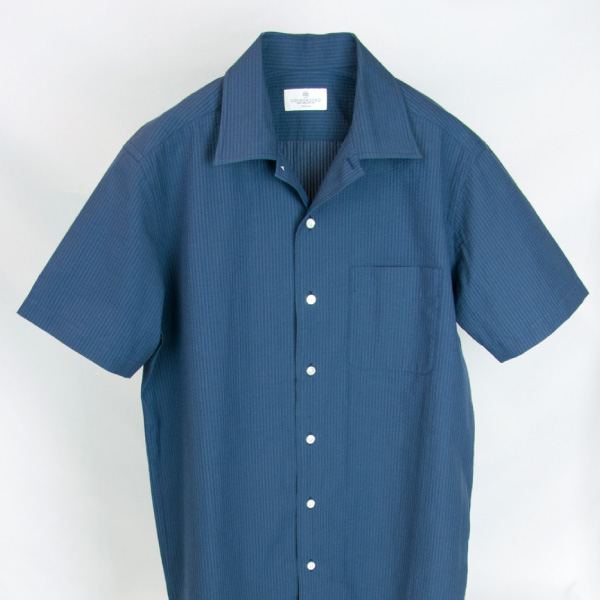 シアサッカー特有の凹凸により肌離れが良く、真夏でも快適な着用感。