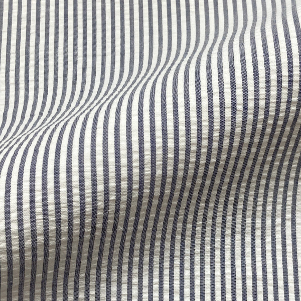拘り抜いた糸で織り上げられた生地は、一般的なシアサッカーとは一線を画すしなやかさと柔らかさが魅力。